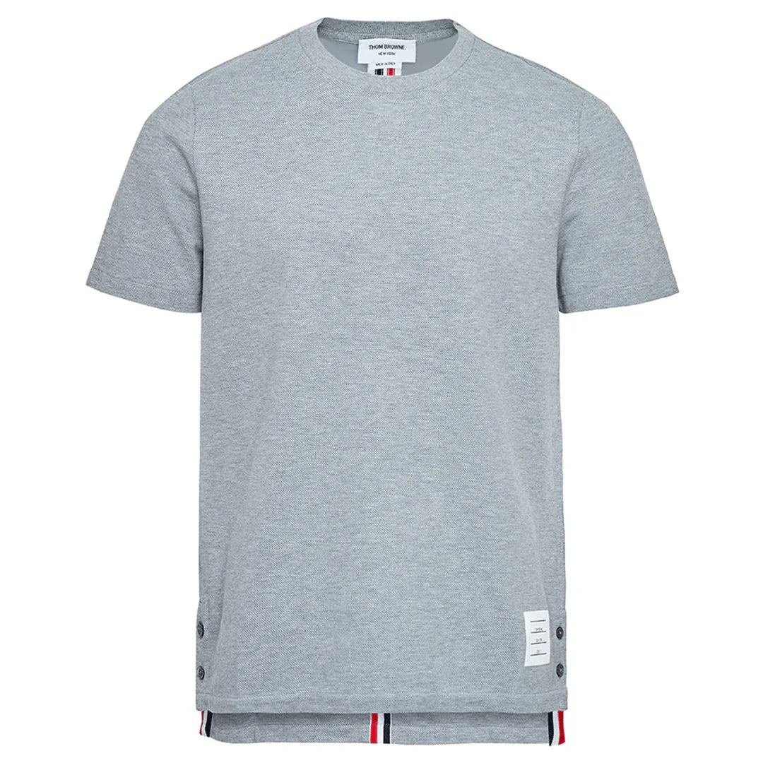Light Grey Cotton Pique Center Back Stripe Relaxed Fit Tee
