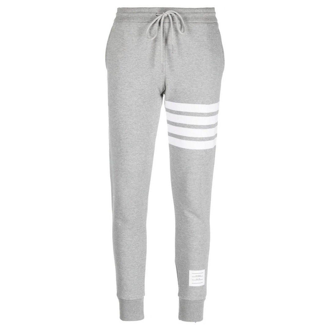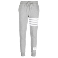 Thom Browne Classic Sweatpants - 100% Cotton - Light Grey - Elasticated drawstring waistband - Signature grosgrain loop tab - 4-bar stripe detailing - Two side inset pockets - Name tag applique - Elasticated ankles - Ankle-length