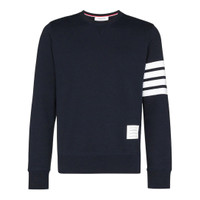 600000549NVY000 / MJT021H-00535/00/461 - Premium cotton fleece construction - Signature four-bar stripe on right sleeve - Grosgrain trim at neckline - Ribbed cuffs and hem - White label patch at bottom hem - Structured fit - Crew neckline The Thom Browne Classic Sweatshirt delivers refined comfort with the brand's signature preppy aesthetic and impeccable tailoring. Crafted from premium cotton fleece in deep navy, featuring the iconic four-bar stripe detail on the right sleeve and signature grosgrain neckline trim. The structured fit and architectural construction elevate this essential piece beyond typical casualwear.