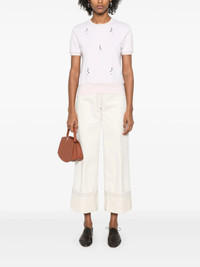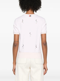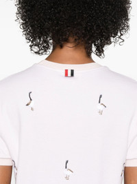 600068821PNK036 / PF25-FJS216E-J0055/00/680 - Premium cotton Milano knit construction - Embroidered geese motif throughout - Short sleeves - Crew neck - Relaxed fit - Signature Thom Browne craftsmanship The Thom Browne Cotton Milano Geese Tee delivers signature whimsical luxury with sophisticated craftsmanship. Crafted from premium cotton Milano knit in soft white, featuring the brand's iconic embroidered geese motif scattered across the silhouette. The relaxed fit and signature Thom Browne attention to detail create a distinctive piece that embodies the label's playful yet refined aesthetic.