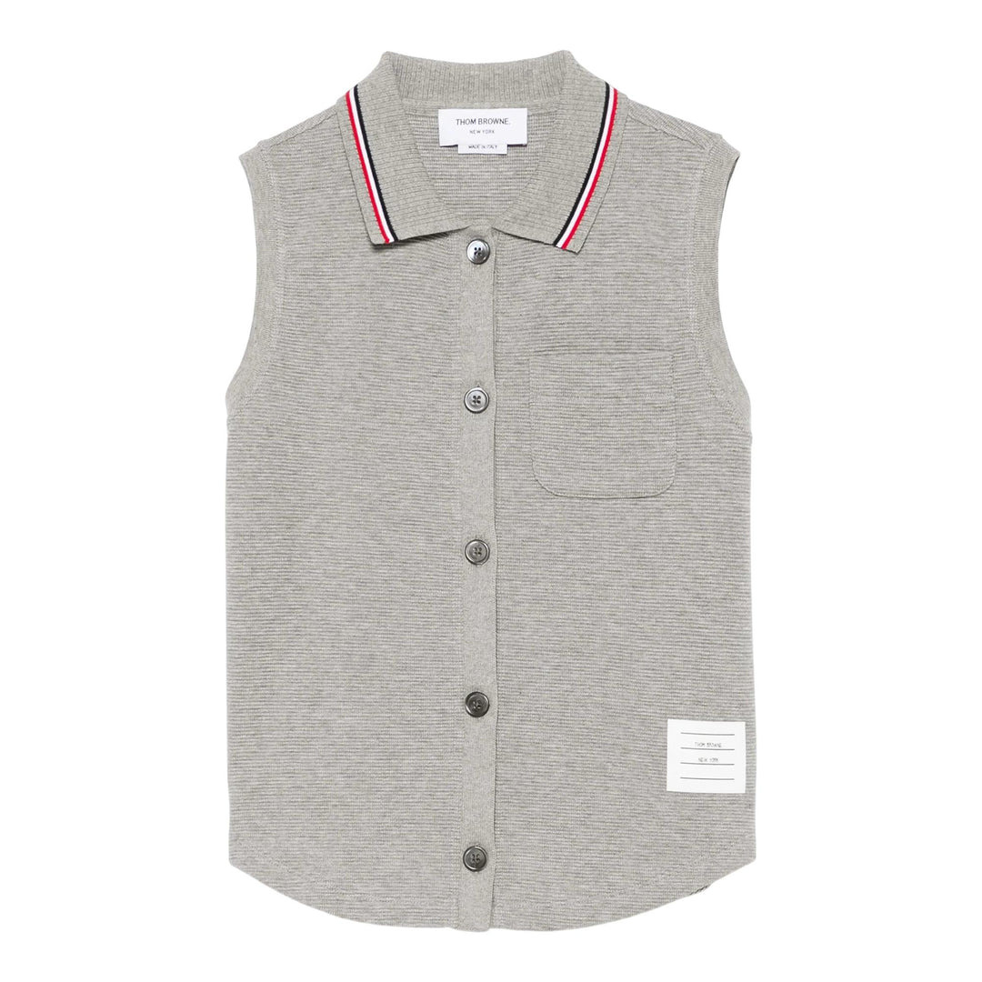Thom Browne Cotton Waffle Sleeveless Button Shirt Women