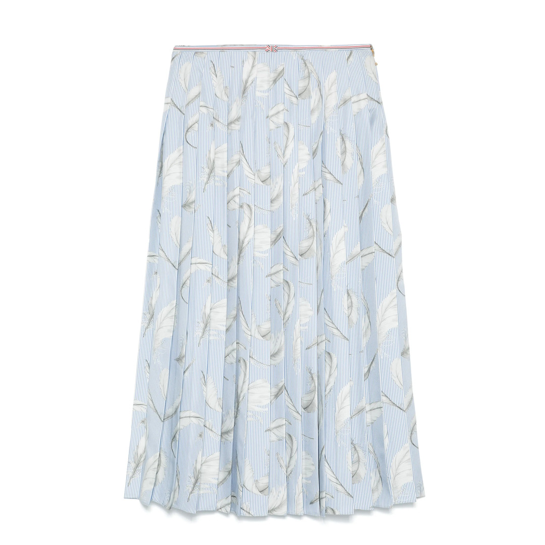 Thom Browne Feather Printed Silk Twill Pleat Skirt Women