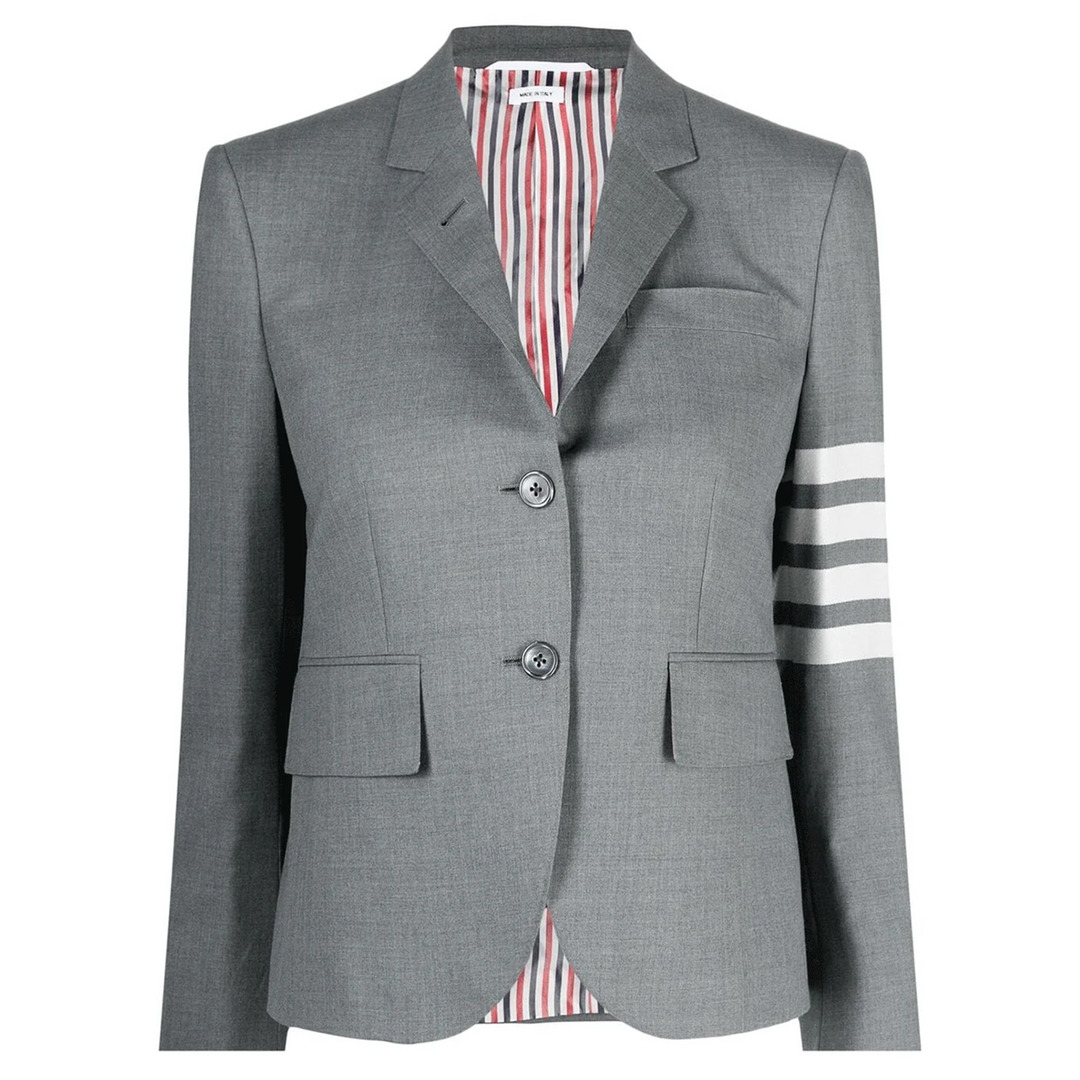 Thom Browne High Armhole Sport Coat Fit 3 - 100% Wool / Lining: 100% Cupro - Grey - Notched lapels - Long sleeves - Signature 4-Bar stripe - Front button fastening - Buttoned cuffs - Signature grosgrain trim - Signature grosgrain loop tab - Chest pocket - Front flap pockets - Rear double vents - Straight hem