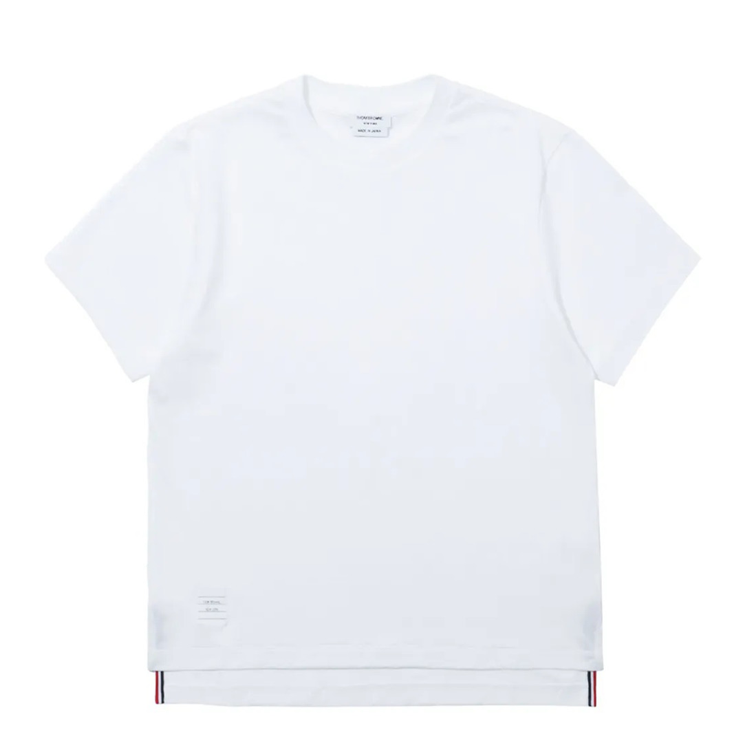 Thom Browne Jersey Relaxed Side Slit Tee Women A silhouette that has stood the test of time, our Jersey Relaxed Side Slit Tee is enriched with a breathable side slit and Thom Browne emblems throughout.