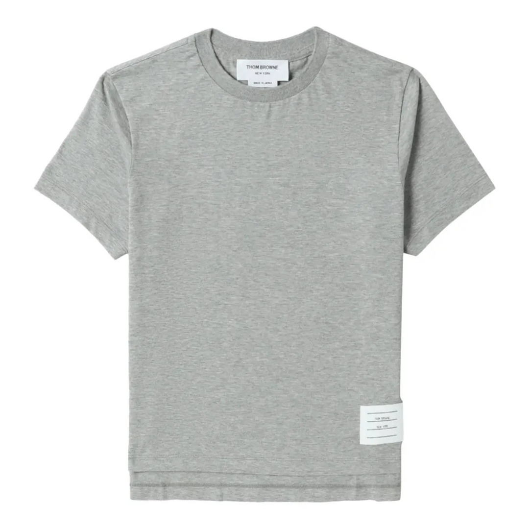 Thom Browne Jersey Relaxed Side Slit Tee Women A silhouette that has stood the test of time, our Jersey Relaxed Side Slit Tee is enriched with a breathable side slit and Thom Browne emblems throughout.