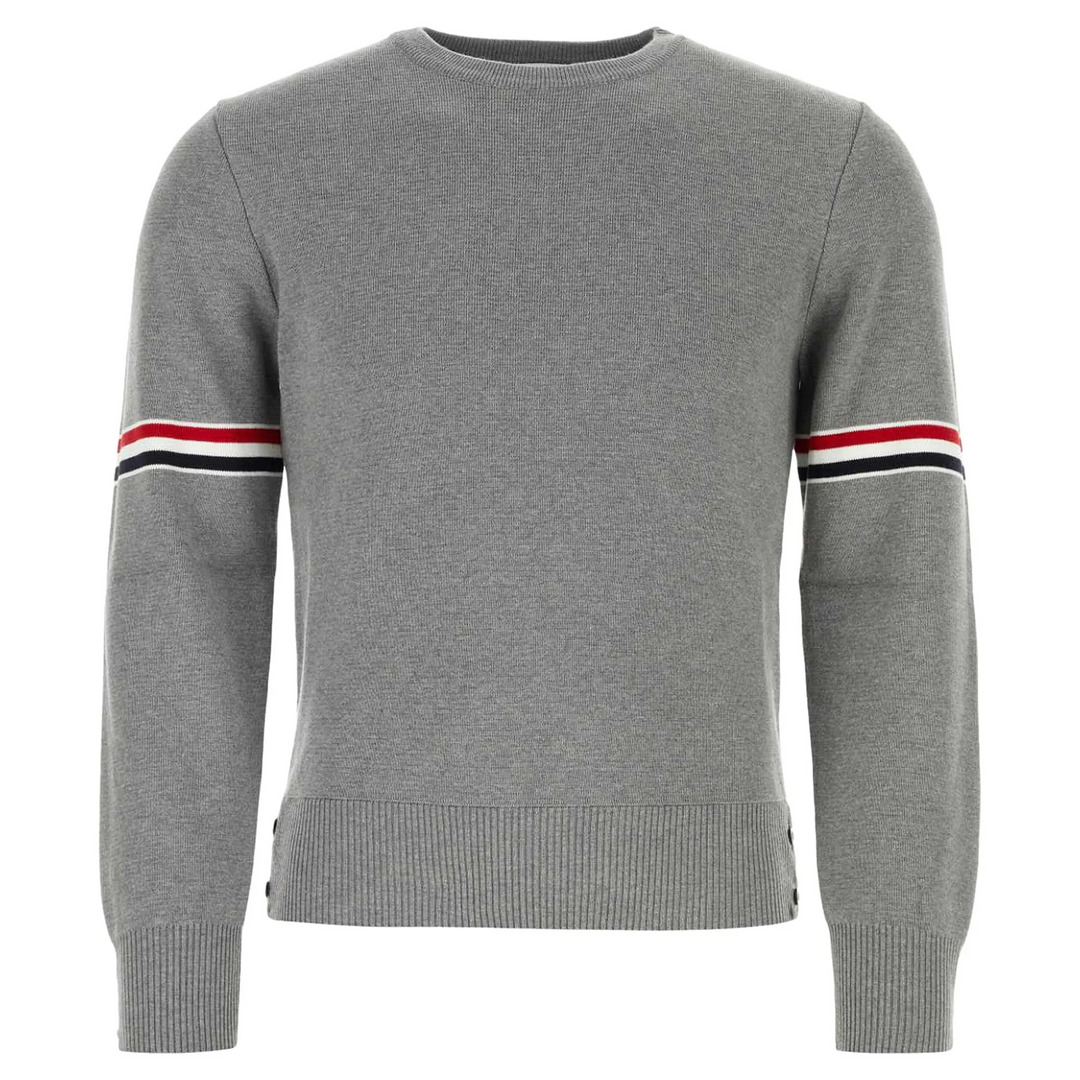 Light Grey Cotton Milano Stitch Stripe Armband Crewneck Pullover