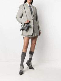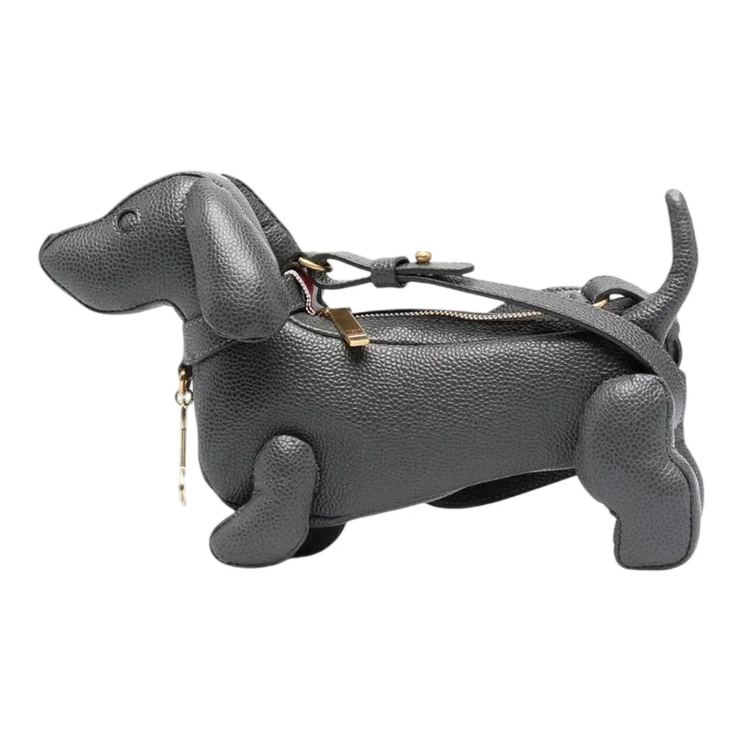 600001766CHA-OS / B5FAP313A-00198/00/025 - Dachshund-shaped crossbody design - Pebble grain leather construction - Top zip closure with leather zipper pull - Adjustable leather shoulder strap - Red interior lining - Gold-tone hardware - Compact size for essentials The Thom Browne Mini Hector Crossbody Bag delivers playful luxury with signature whimsical design and premium craftsmanship. Crafted from supple pebble grain leather in sophisticated gray, featuring the brand's iconic dachshund silhouette with detailed facial features and signature red tongue interior. The structured dog shape and gold-tone hardware create a statement accessory that embodies Thom Browne's distinctive aesthetic.