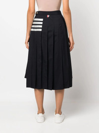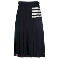 Thom Browne Navy Wool Plain Weave Pleated 4-Bar Skirt