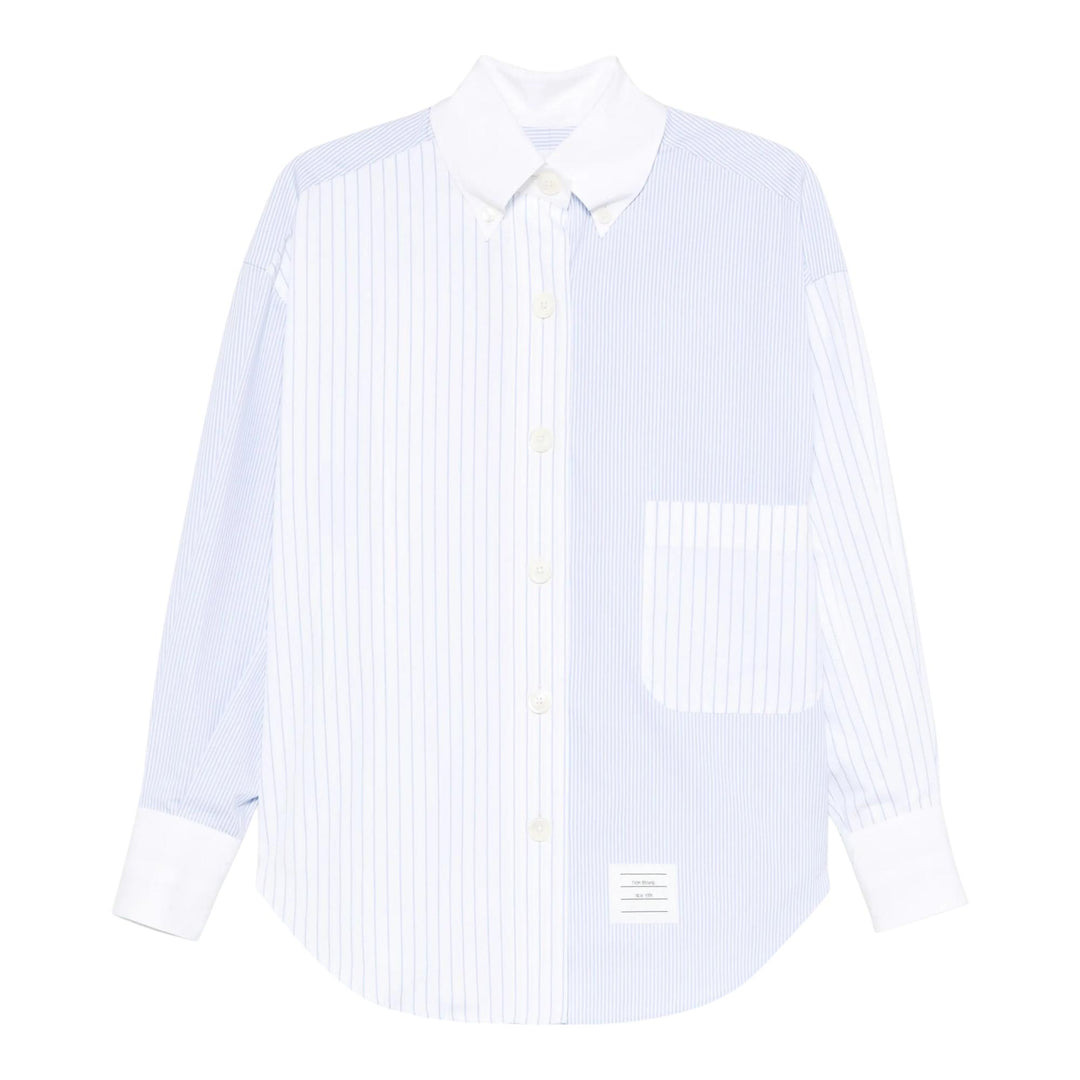 Thom Browne Poplin Pinstripe Funmix Micro University Striped Supersized Long Sleeve Shirt Women