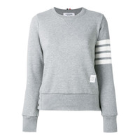 300024365LGY-40 / E3FJT002A-00535-055 - Crew neckline with ribbed trim - Signature four-bar stripe on left sleeve - Ribbed cuffs and hem - Side seam detailing - Premium cotton fleece construction - Regular fit Thom Browne Pullover Sweatshirt delivers luxury comfort with refined athletic-inspired design. Crafted from premium cotton fleece in classic light grey melange, featuring the brand's signature four-bar stripe detailing on the left sleeve. The structured silhouette and heritage-inspired construction create an elevated casual piece for contemporary wardrobes.