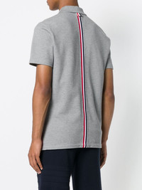 600011170LGY000 / MJP042A-00050/00/055 - Pique cotton construction - Signature tricolor collar detail - Six-button placket - Short sleeves - Relaxed fit - Ribbed collar and cuffs The Thom Browne Relaxed Fit Polo delivers refined American luxury with signature preppy sophistication. Crafted from premium pique cotton in classic gray melange, featuring the brand's iconic tricolor collar detail and heritage button placket. The relaxed silhouette and meticulous construction create an elevated essential for the contemporary gentleman's wardrobe.