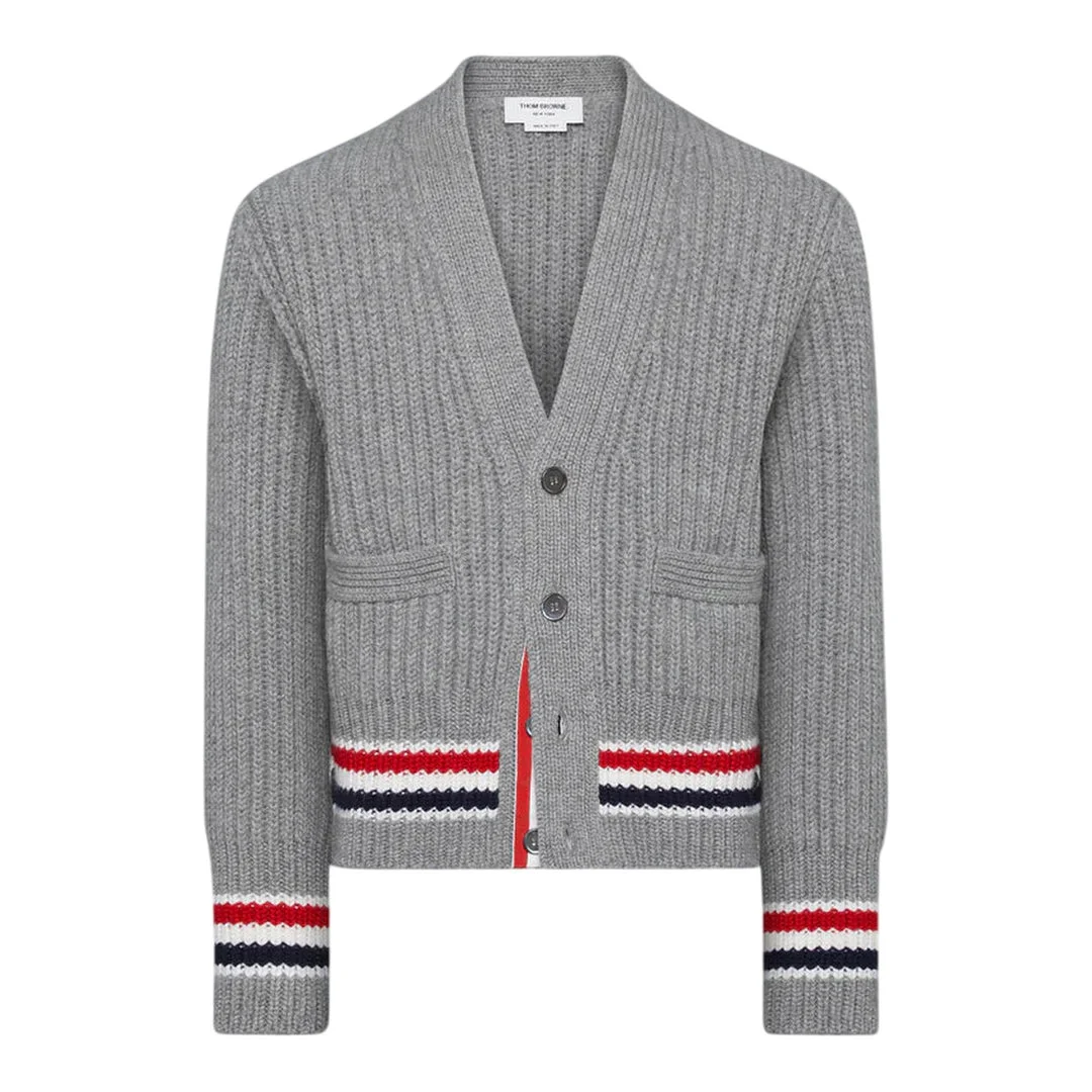 Thom Browne Rwb Stripe Cashmere V Neck Cardigan Men