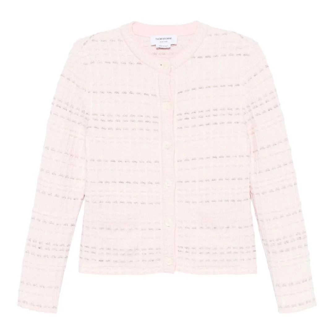 Thom Browne Seersucker Knit Tweed Jacquard Cardigan Women