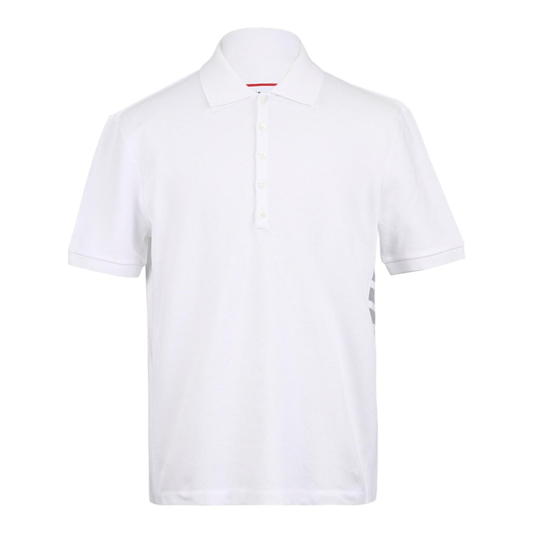 600068711WHT001 / MJP110A-00050/00/100 - Premium cotton pique construction - Ribbed knit cuffs and collar - Three-button placket closure - Short sleeves - Classic polo collar - Tailored fit The Thom Browne Short Sleeve Rib Cuff Polo delivers refined preppy elegance with signature architectural tailoring. Crafted from premium cotton pique in crisp white, featuring the brand's distinctive rib-knit cuffs and classic three-button placket. The structured silhouette and meticulous construction showcase Thom Browne's mastery of American luxury menswear.