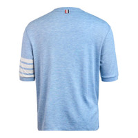 600068918LBL003 / AW25-MJS292A-J0213/00/480 - Crew neck with V-notch detail - Short sleeves with ribbed cuffs - Signature white stripe detail on right sleeve - White logo label at hem - Lightweight cotton construction - Relaxed fit The Thom Browne Short Sleeve Rib Cuff Tee delivers preppy sophistication with the brand's signature athletic-inspired design. Crafted from premium lightweight cotton in heathered light blue, featuring signature white stripe detailing on the right sleeve. The relaxed fit and ribbed construction create a refined casual piece that embodies Thom Browne's distinctive American luxury aesthetic.
