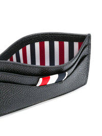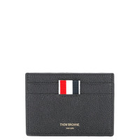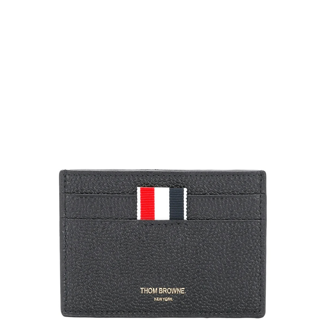 Thom Browne Single Card Holder In Pebble Grain Since its establishment in 2003, Thom Browne's eponymous label has consistently pushed the boundaries of tailoring and men's formalwear, continuously reinventing classic designs. Expertly crafted from leather, this cardholder showcases the brand's signature stripe tab and gold-tone embossed branding on the front. - 100% Leather - Black - Gold-tone logo lettering - 2 Card Slots - 1 Note Compartment - Tricolor Stripe Lining - Signature Grosgrain Loop Tab
