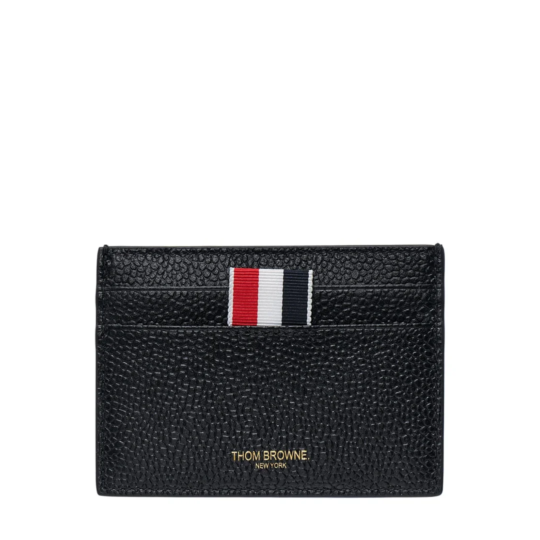 600077551BLK0OS / PS26-UAW085A-00198/00/001 - Perforated pebbled leather construction - Signature tricolor grosgrain stripe - Single card slot design - Gold-stamped Thom Browne New York branding - Compact slim profile - Premium leather edge finishing Thom Browne Single Card Holder delivers refined minimalism with signature American luxury craftsmanship. Crafted from premium perforated pebbled leather in classic black, featuring the iconic tricolor grosgrain stripe detail. The compact design and meticulous construction exemplify Thom Browne's commitment to sophisticated accessories.