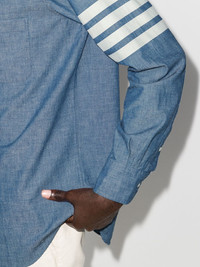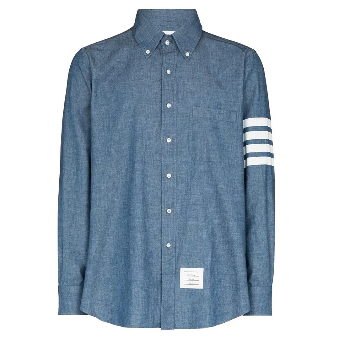 Thom Browne Straight Fit Button Down Long Shirt Introducing the Straight Fit Button Down Long Shirt by Thom Browne. With its button-down collar and front button fastening, this shirt blends classic style with modern sophistication. The long sleeves add a touch of elegance, making it a versatile and timeless addition to your wardrobe. - Colour: Blue - Composition: 100% Cotton - Straight fit - Button down collar - Front button fastening - Long sleeves - Button cuffs - Curved hem - Chest pocket - Front logo patch - Four-bar stripes at the sleeve