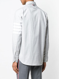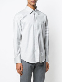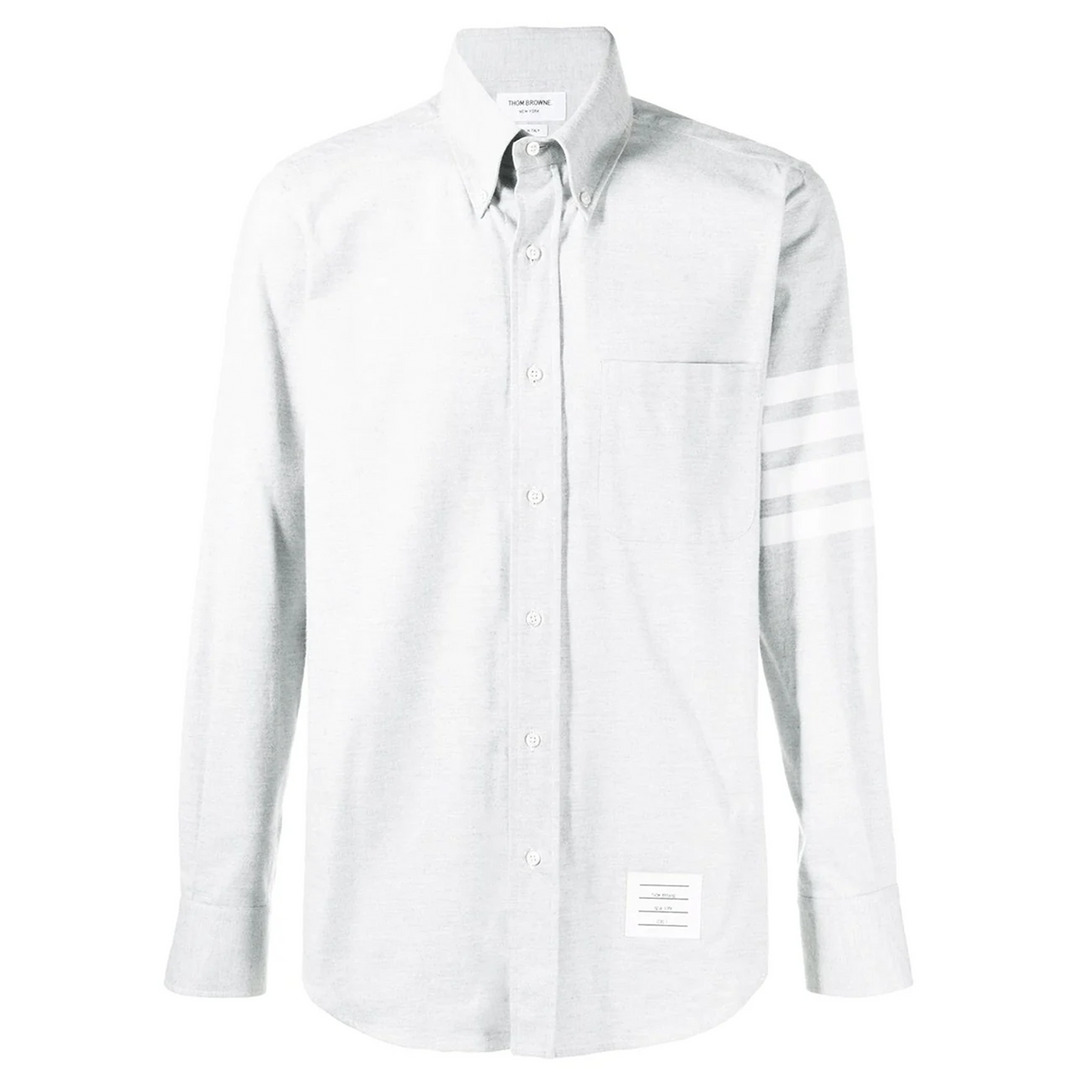 Thom Browne Straight Fit Long Sleeve Shirt - 100% Cotton - Grey - Button-down collar - Long sleeves - Signature 4-Bar stripe - Name tag applique - Signature grosgrain loop tab - Buttoned cuffs - Front button placket - Curved hem - Regular fit