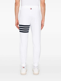 600068770WHT000 / PF25-MJQ230A-00535/00/104 - Elasticated waistband with drawstring - Signature four-bar stripe detail - Loopback cotton fleece construction - Tailored slim fit - Side seam pockets - Ribbed ankle cuffs Thom Browne Classic Loopback Sweatpants deliver refined comfort with the brand's signature tailored aesthetic and premium construction. Crafted from soft loopback cotton fleece in clean white, featuring the iconic four-bar stripe detail and meticulous attention to fit and proportion. The structured silhouette and signature Thom Browne detailing elevate casual wear with sophisticated luxury.