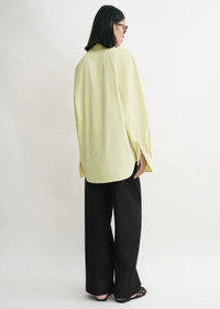 600070272YEL036 / 253-WRT0515-FB0226-300/00/300 - Raglan sleeve construction - Classic point collar - Full button-front closure - Long sleeves with button cuffs - Premium lightweight cotton fabric - Relaxed, contemporary fit - Clean, minimalist design The TOTEME Raw Raglan Shirt delivers effortless sophistication with contemporary Scandinavian minimalism. Crafted from premium lightweight cotton in soft sage green, featuring distinctive raglan sleeves and clean architectural lines. The relaxed silhouette and understated elegance create a versatile foundation piece for modern wardrobes.