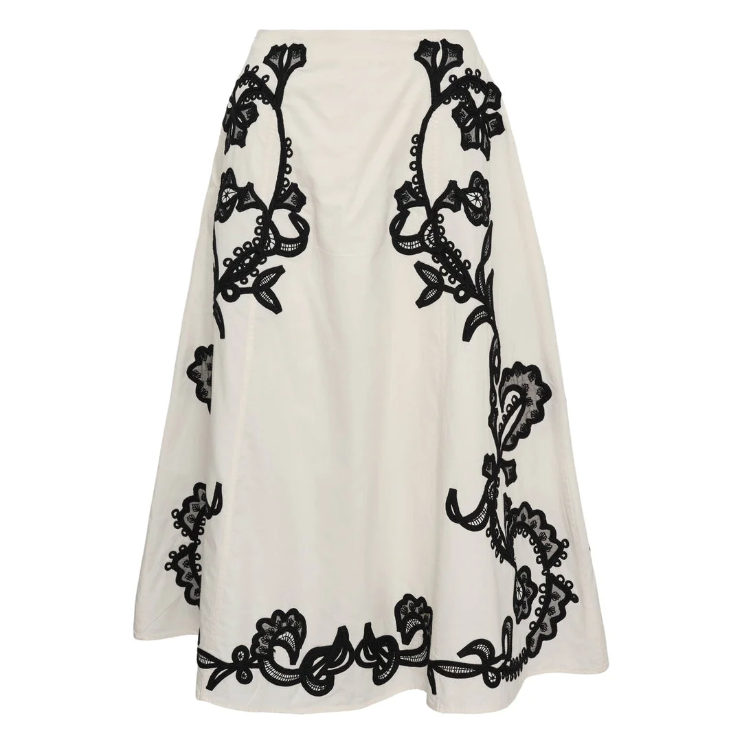 Ruby A-Line Embroidered Midi Skirt
