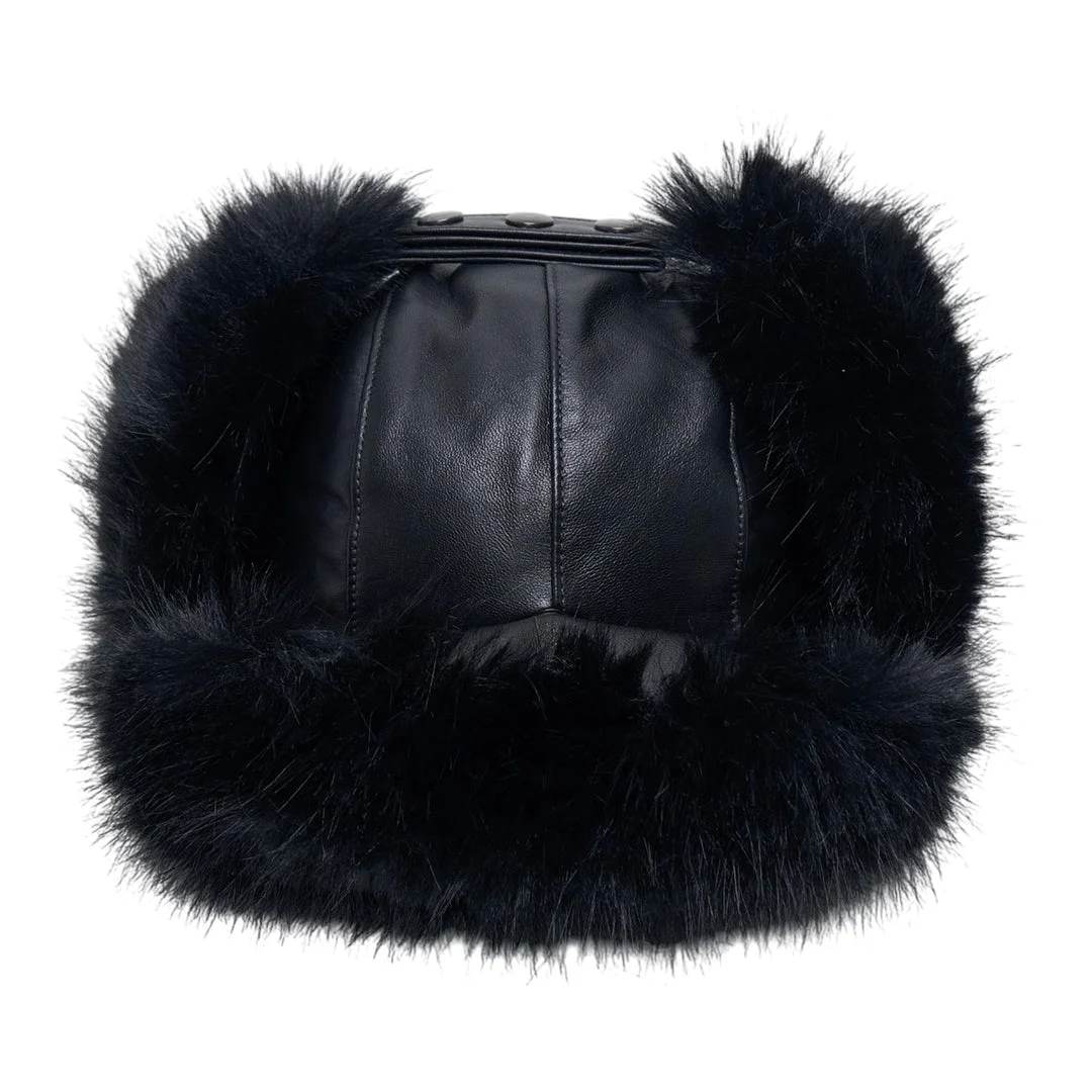 600074999BLK0OS / VAQ10K816/00/1 - Premium black leather construction - Plush faux fur trim - Adjustable ear flaps - Traditional trapper hat design - Soft leather interior lining - Unisex sizing VAQUERA Women Trapper Hat delivers contemporary luxury with classic cold-weather functionality and avant-garde design sensibility. Crafted from premium black leather with plush faux fur trim, featuring ear flaps and traditional trapper construction for maximum warmth. The modern silhouette and high-quality materials create a statement piece that bridges streetwear and luxury fashion.