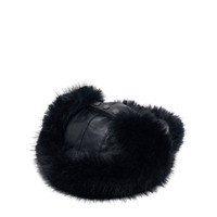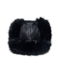 leather faux fur-trimmed hat