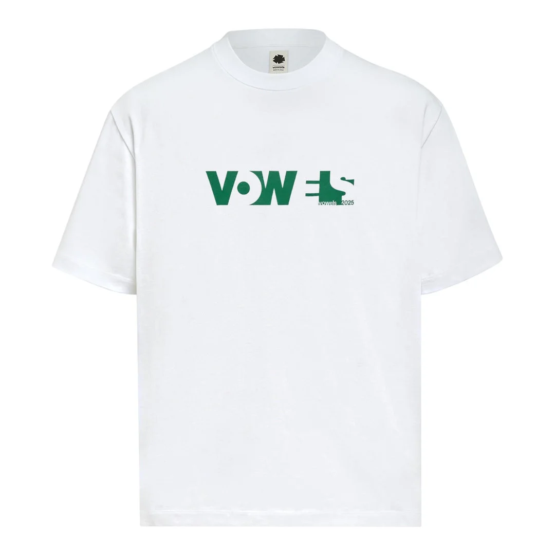 The vowels Overall Tee delivers contemporary streetwear with minimalist graphic design and premium comfort. Crafted from soft cotton in clean white, featuring the brand's signature green logo across the chest. The relaxed fit and quality construction create an essential piece for modern casual wardrobes.