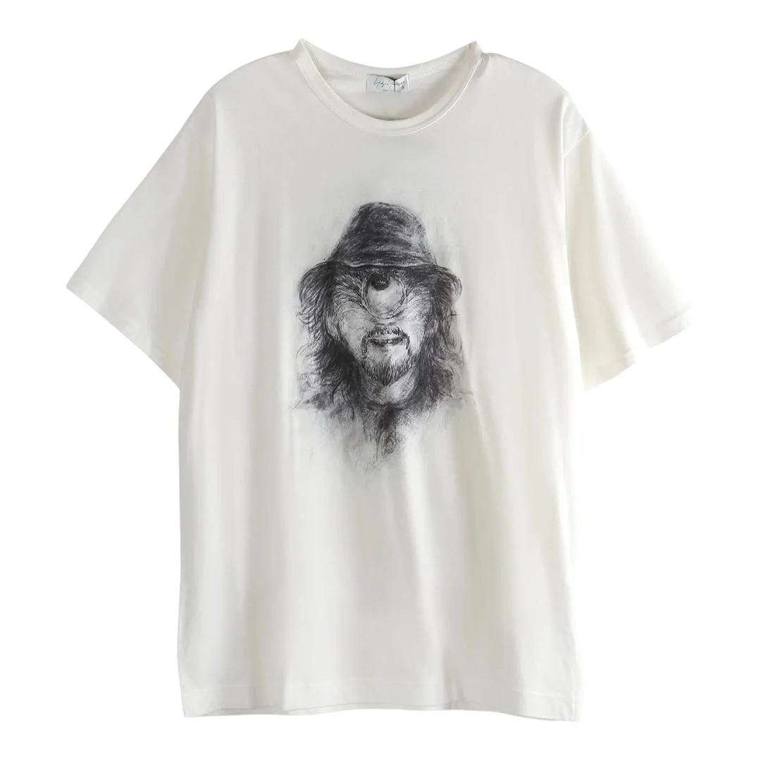 600070323OWT003 / HL-T93-992/00/1 - Crew neck design - Short sleeves with relaxed fit - Artistic portrait print on front - Premium cotton construction - Oversized silhouette - Ribbed neckline The Yohji Yamamoto Basic Short Sleeve Printed Tee delivers avant-garde streetwear with artistic portrait detailing and relaxed sophistication. Crafted from premium cotton in clean white, featuring a striking pencil-sketched portrait print that embodies the brand's conceptual aesthetic. The oversized silhouette and signature Yamamoto construction create a contemporary wardrobe essential with artistic edge.