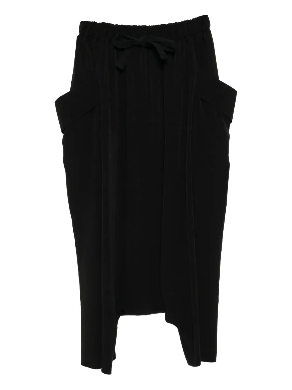 600077417BLK002 / FQ-P52-500/00/1 - Elasticated waistband with drawstring closure - Drop-crotch sarouel silhouette - Large front pockets - Premium cotton blend construction - Relaxed tapered fit - Adjustable waist tie Yohji Yamamoto Big Pocket Sarouel Pants deliver avant-garde silhouette with distinctive drop-crotch construction and oversized pocket detailing. Crafted from premium black cotton blend fabric, featuring an elasticated waistband with adjustable drawstring closure for customized comfort. The signature sarouel cut and architectural pocket placement create a bold statement piece that embodies Yamamoto's deconstructed aesthetic.
