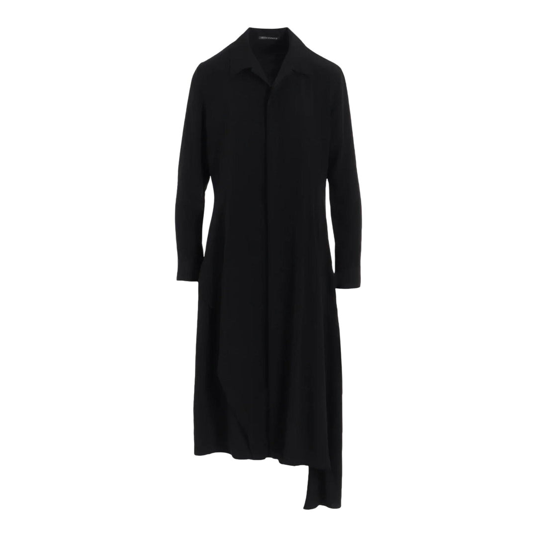 Y's Collar Shirt Dress Elegant Cuban collar shirt dress made from crepe de Chine, offering a mild sheen and luxurious feel. The dress’s drapery engenders an elegant aura, suitable for formal occasions.
