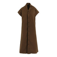 600073752BGE002 / YL-D18-011/00/1 - Full button-front closure - French sleeve design - Classic shirt collar - Midi-length silhouette - Structured cotton blend fabric - Relaxed fit - Side seam pockets Y's French Sleeve Dress delivers Japanese minimalist sophistication with architectural silhouette and modern functionality. Crafted from structured cotton blend in earthy olive brown, featuring distinctive short sleeves and full button-front closure for versatile styling. The relaxed midi-length silhouette embodies Yohji Yamamoto's signature deconstructed aesthetic with contemporary wearability.