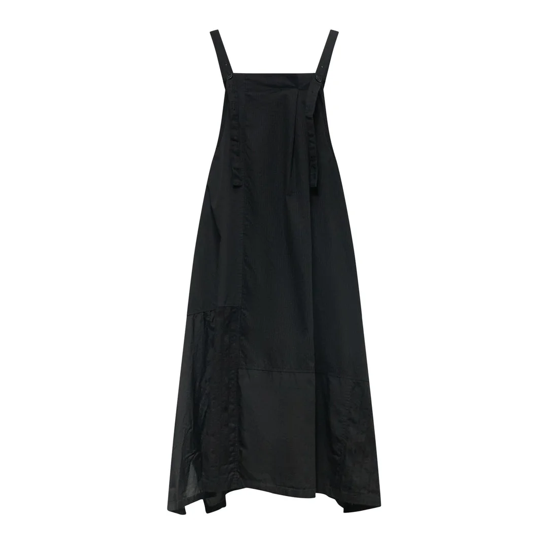600077440BLK001 / YQ-D13-829/00/3 - Wide shoulder strap design - Square neckline - Sleeveless construction - Tiered asymmetrical skirt - Structured woven fabric - Loose, flowing fit - Full-length maxi silhouette Y's Tuck Shoulder Strap Dress delivers avant-garde minimalism with architectural draping and contemporary Japanese design. Crafted from structured woven fabric in deep black, featuring wide shoulder straps and an asymmetrical tiered skirt construction. The voluminous silhouette and signature Y's deconstructed aesthetic create a bold statement piece for the modern wardrobe.