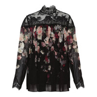 lace-trimmed floral blouse