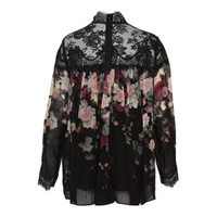 600074222BLK020 / 5245TF251/00/BCSC - High lace mock neckline - Intricate floral lace yoke panel - Long sleeves with lace cuff details - Sheer chiffon construction - Vintage-inspired floral print - Relaxed fit through body - Button closure at back neck ZIMMERMANN Hypnotic Lace Yoke Blouse delivers romantic femininity with intricate lace detailing and flowing silhouette. Crafted from delicate chiffon with vintage-inspired floral print in burgundy and blush tones, featuring ornate lace yoke construction. The high neckline and sheer fabrication create an ethereal statement piece with signature Australian elegance.