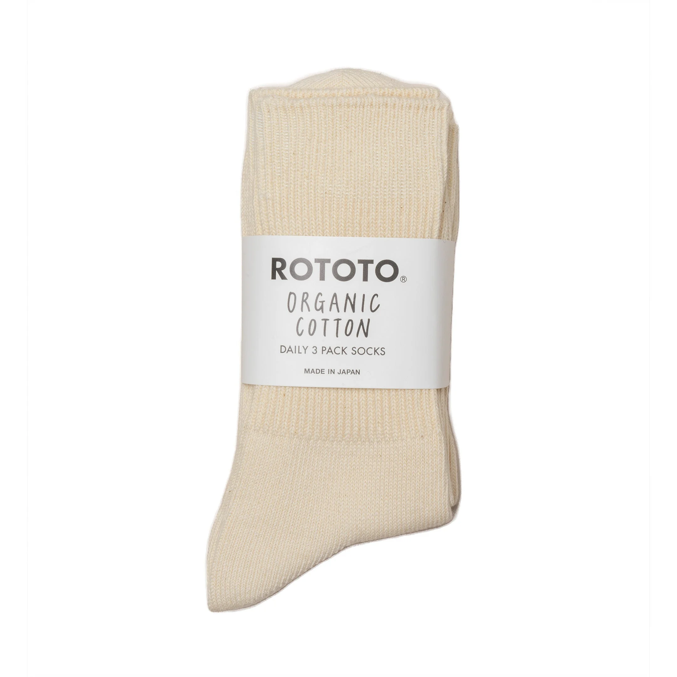 Rototo Organic Daily 3 Pack Ribbed Crew Socks Ecru