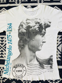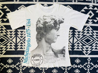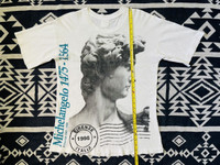 THIS IS USED CLOTHING PLEASE DONāT EXPECTED IT TO BE LIKE NEW OR IN PRISTINE CONDITION!!!š. š«All SAIZ PIT TO PIT , WAIST , LENGHT AND OTHER ALL MANUAL MEASUREMENT PLEASE REFER PHOTOS DETAIL MANUAL MEASUREMENT BEFORE BUY OR OFFER PRICEš«.TQ šAny Problems Regarding The Size Once The Goods Arrive. The Seller Will Not Be Responsible Donāt Give Negative Reviewsš See Photos For Detail and Manual Measurement Vintage Havy Art Michelangelo Italia T Shirt Pit to pit : 20ā lenght : 28ā Condition :used item / still good for wear Material : cotton Saiz : Large Made in : Italy 100% Legit Item Good condition used item still good for wear Used item overall Scale 9/10 As seen detail in the photo. Worldwide method shipping Asked me for more details Please check and read details before make purchaseĀ No refund Thank you enjoy your shoping.