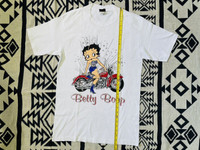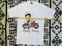 THIS IS USED CLOTHING PLEASE DON’T EXPECTED IT TO BE LIKE NEW OR IN PRISTINE CONDITION!!!😊. 🚫All SAIZ PIT TO PIT , WAIST , LENGHT AND OTHER ALL MANUAL MEASUREMENT PLEASE REFER PHOTOS DETAIL MANUAL MEASUREMENT BEFORE BUY OR OFFER PRICE🚫.TQ 📍Any Problems Regarding The Size Once The Goods Arrive. The Seller Will Not Be Responsible Don’t Give Negative Reviews📍 See Photos For Detail and Manual Measurement Vintage 1994 Betty Boop Cafe Race Tshirt Pit to pit :18” lenght : 30” Condition :used item / still good for wear Material : cotton Saiz : Medium on tag Made in : Usa 100% True Vintage Item Good condition used item still good for wear Used item overall Scale 9/10 As seen detail in the photo. Worldwide method shipping Asked me for more details Please check and read details before make purchase No refund Thank you enjoy your shoping.