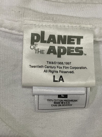 THIS IS USED CLOTHING PLEASE DON’T EXPECTED IT TO BE LIKE NEW OR IN PRISTINE CONDITION!!!😊. 🚫All SAIZ PIT TO PIT , WAIST , LENGHT AND OTHER ALL MANUAL MEASUREMENT PLEASE REFER PHOTOS DETAIL MANUAL MEASUREMENT BEFORE BUY OR OFFER PRICE🚫.TQ 📍Any Problems Regarding The Size Once The Goods Arrive. The Seller Will Not Be Responsible Don’t Give Negative Reviews📍 See Photos For Detail and Manual Measurement Vintage 1997 Planet Of The Apes POTA Movie T.Shirt Pit to pit : 20.5” lenght : 31.5” Condition :used item / still good for wear Material : cotton Saiz : Large Made in : Usa 100% Legit Item Good condition used item still good for wear Used item overall Scale 9/10 As seen detail in the photo. Worldwide method shipping Asked me for more details Please check and read details before make purchase No refund Thank you enjoy your shoping.