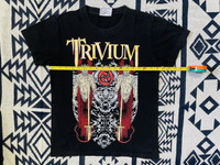 THIS IS USED CLOTHING PLEASE DON’T EXPECTED IT TO BE LIKE NEW OR IN PRISTINE CONDITION!!!😊. 🚫All SAIZ PIT TO PIT , WAIST , LENGHT AND OTHER ALL MANUAL MEASUREMENT PLEASE REFER PHOTOS DETAIL MANUAL MEASUREMENT BEFORE BUY OR OFFER PRICE🚫.TQ 📍Any Problems Regarding The Size Once The Goods Arrive. The Seller Will Not Be Responsible Don’t Give Negative Reviews📍 See Photos For Detail and Manual Measurement Vintage 90s Trivium Heavy metal Band Bootleg T Shirt Pit to pit :18.5” lenght : 25” Condition :used item / still good for wear Material : cotton Saiz : Small Made in : Thailand 100% Vintage Item Good condition used item still good for wear Used item overall Scale 9/10 As seen detail in the photo. Worldwide method shipping Asked me for more details Please check and read details before make purchase No refund Thank you enjoy your shoping.