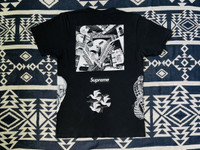 THIS IS USED CLOTHING PLEASE DON’T EXPECTED IT TO BE LIKE NEW OR IN PRISTINE CONDITION!!!😊. 🚫All SAIZ PIT TO PIT , WAIST , LENGHT AND OTHER ALL MANUAL MEASUREMENT PLEASE REFER PHOTOS DETAIL MANUAL MEASUREMENT BEFORE BUY OR OFFER PRICE🚫.TQ 📍Any Problems Regarding The Size Once The Goods Arrive. The Seller Will Not Be Responsible Don’t Give Negative Reviews📍 See Photos For Detail and Manual Measurement Supreme X Mc Escher 2017 T Shirt Pit to pit : 19.5” lenght : 28.5” Condition :used item / still good for wear Material : cotton Saiz : Medium Made in : usa 100% Legit Item Good condition used item still good for wear Used item overall Scale 9/10 As seen detail in the photo. Worldwide method shipping Asked me for more details Please check and read details before make purchase No refund Thank you enjoy your shoping.