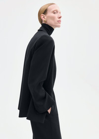A precisely tailored yet lightweight single-button jacket that embodies effortless sophistication. With a refined straight silhouette and contemporary ease, it reinterprets the classic blazer for a timeless, versatile statement—equally suited for day or evening. Details - Black - 95% Virgin Wool 5% Elastane - Dry Clean Only - Style Number: 6234ABSW-CORE Size & Fit - Designed for a relaxed fit. - Size down if you prefer a more fitted style. - Measures 30" in overall length - Model is 5'10" and wears a size small.