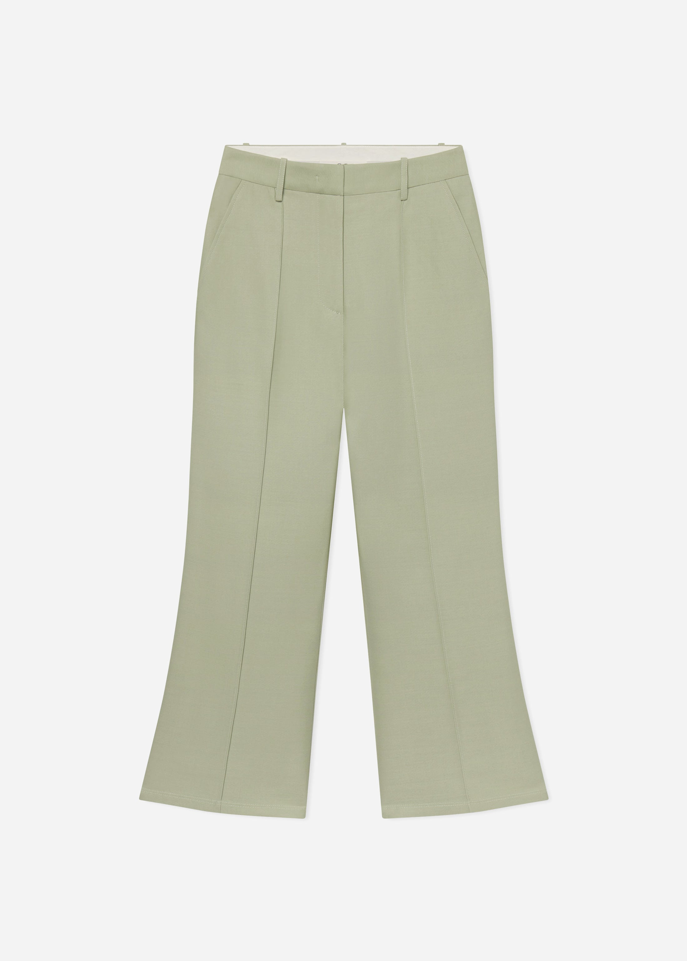 Tailored with a twist. These trousers are cut from structured faille in a soft camel and feature a subtle cropped flare silhouette. Clean front seams, side pockets, and a streamlined waistband offer a sharp, modern finish. A refined pop of color for minimalist wardrobes Details - Tea Green - 70% Viscose 30% Virgin wool - Dry Clean Only - 5449HSF-PF25 Size & Fit - True to size. - Model is 5'10" and wears a size small
