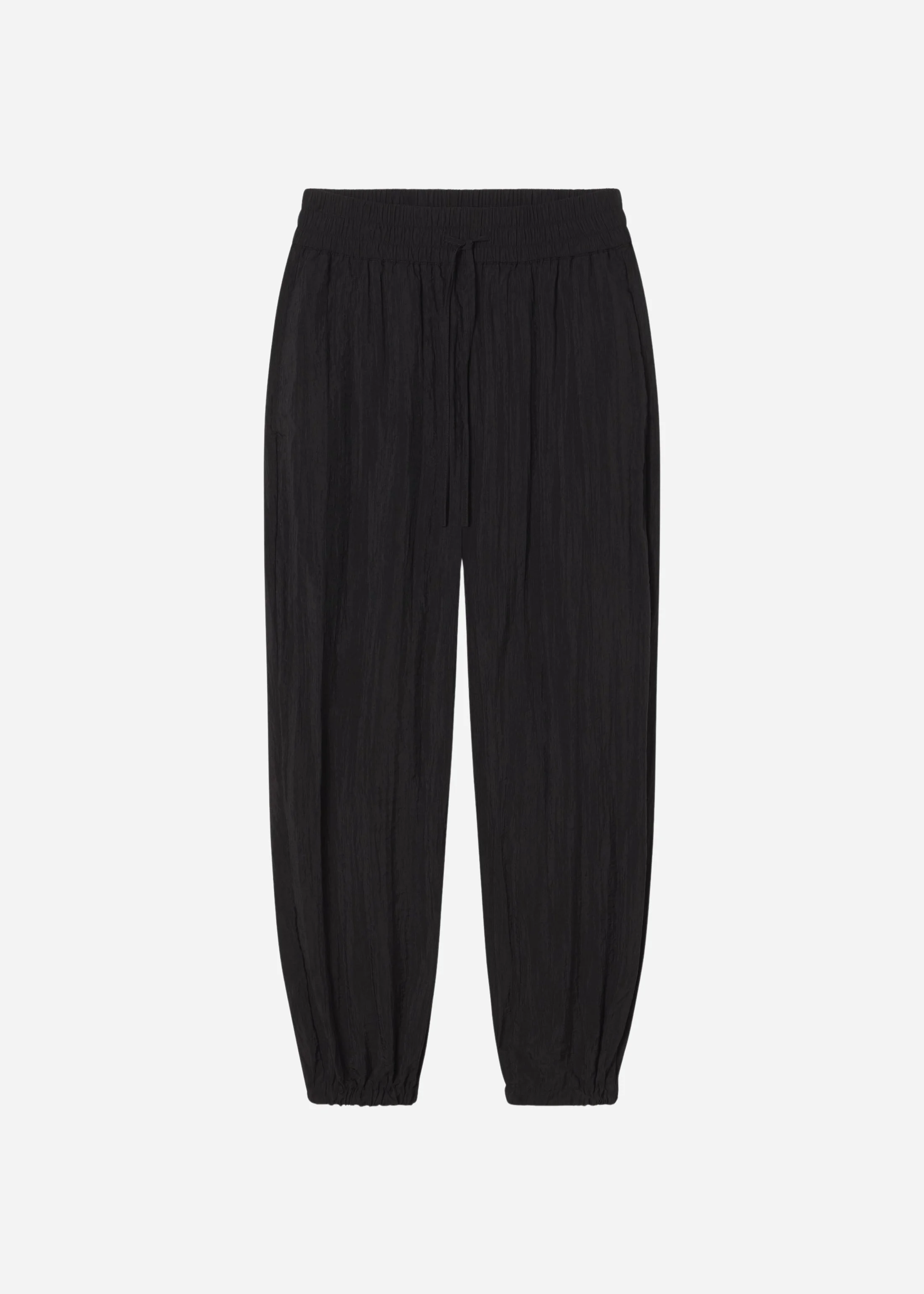 Crafted from recycled nylon, these joggers balance ease and refinement. Designed with an elastic drawstring waist and tapered cuffs, they offer a relaxed silhouette with subtle structure. Lightweight with a soft sheen, they pair effortlessly with knits or the matching pullover for a modern, elevated take on sport dressing. Details - Black - 77% Polyester, 23% Recycled Nylon - Pockets - Elasticated Waistband - Style Number: 5254BRN-PS26 Size & Fit - Elasticated Waistband - Determine your size based on waist measurement.