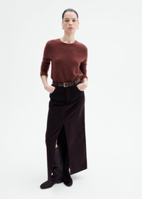 This refined crewneck sweater features a lightweight silk-cashmere blend, where the silk adds a cool touch to the rich softness of cashmere, making it suitable for year-round elegance. It is completed with neat edges and a timeless silhouette. Details - Brick - 60% Cashmere, 40% Silk - Dry Clean Only - Style Number: 7380TLA-F25 Size & Fit - Close fit throughout the body. - We recommend sizing up for a more relaxed silhouette.