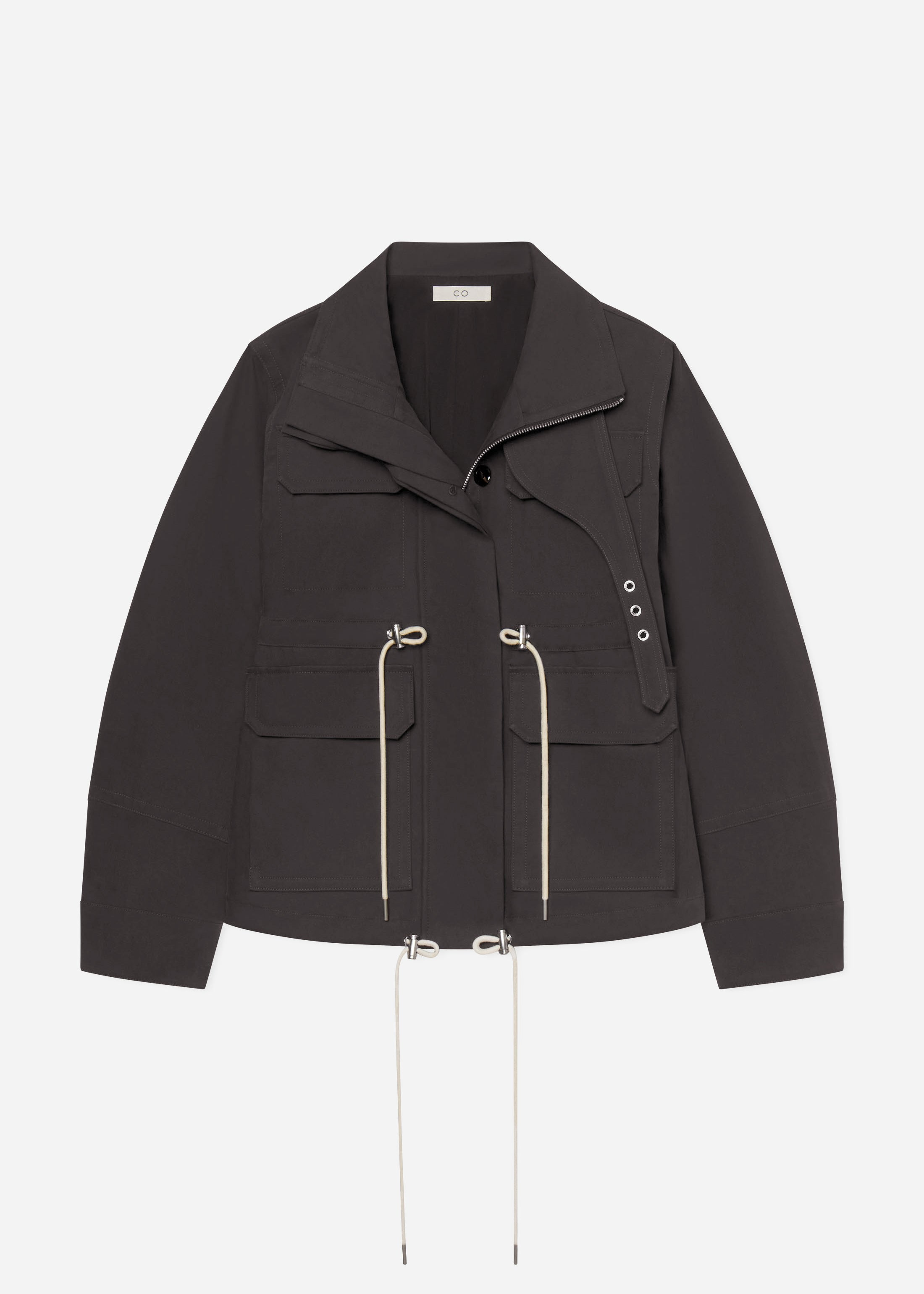 A refined take on utility. This short military-style jacket is cut from soft, brushed cotton twill for a matte, tactile finish. Designed with oversized flap pockets, tonal buttons, and contrast drawcords at the waist and hem to adjust the shape. Lightweight yet structured, it’s the perfect transitional layering piece. Details - Chocolate - 100% Cotton - Dry Clean Only - 6205EBC-PF25 Size & Fit - True to size. - Model is 5'10" and wears a size small