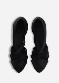 Crafted in lustrous satin, this sculptural heel features soft crossover straps that frame the foot and an open toe that keeps the silhouette light. A cutaway side and tapered, conical heel deliver height. Made in Italy. Details - Black - 100% Satin - Made in Italy - Cushioned insole - Protect from moisture and abrasive surfaces. - Style Number: 0833RASO Size & Fit - Fits true to size. - Heel measures 87mm