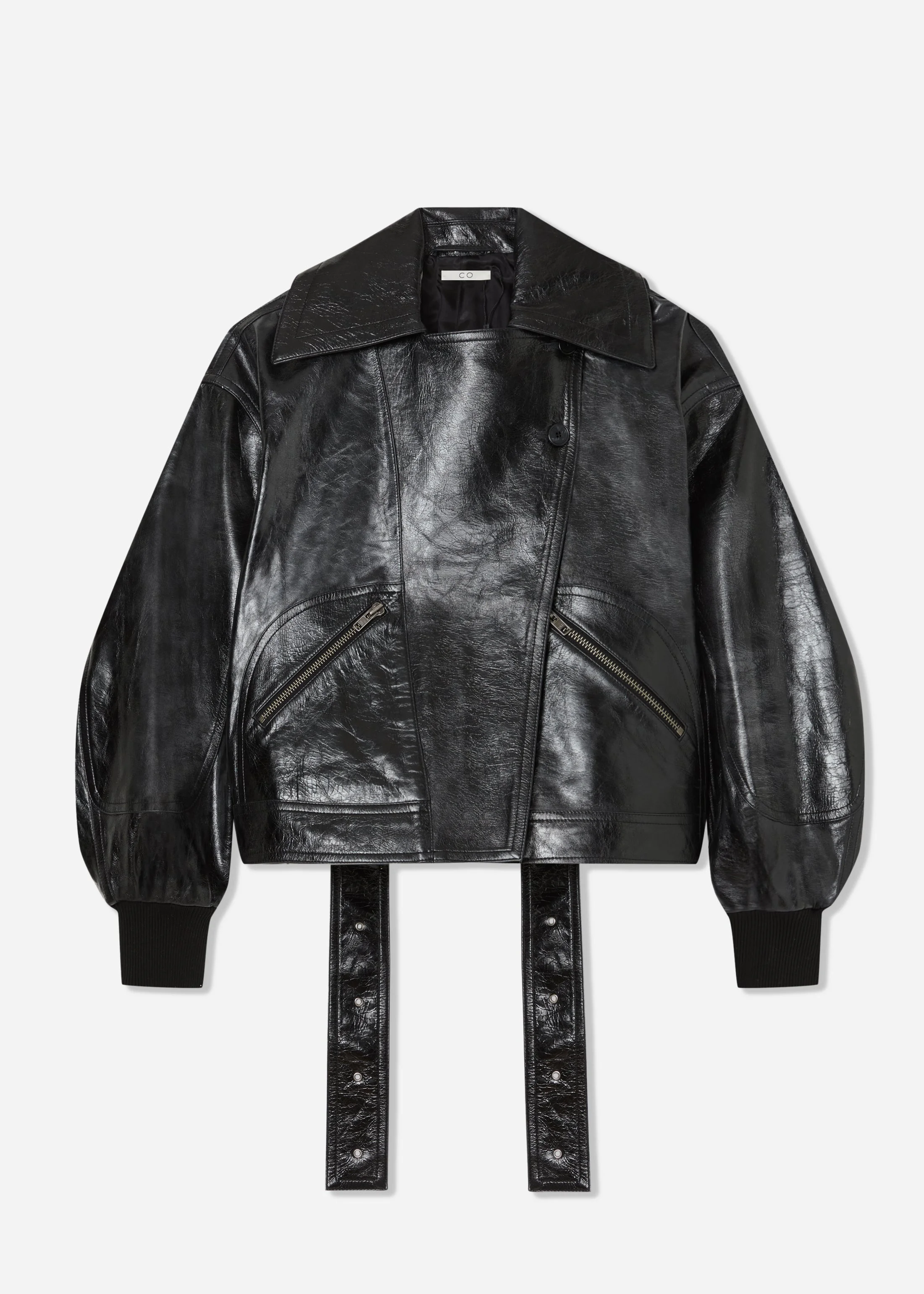 Crafted from richly textured leather, this sculptural bomber jacket reinterprets a classic silhouette with modern edge. Defined by an oversized collar, asymmetric front closure, and zip pockets, it’s finished with adjustable side tabs and ribbed cuffs. Due to the nature of the leather, each piece will have unique texture and tone. Details - Black - 100% Leather - Pockets - Dry Clean Only - Style Number: 6457ABCL-PS26 Size & Fit - Intended for an oversized, boxy fit - Adjustable side tabs allow for a more defined shape - Size down for a closer fit - Measures 25" from shoulder to bottom hem - Model Height is 179 cm / 5'11 in