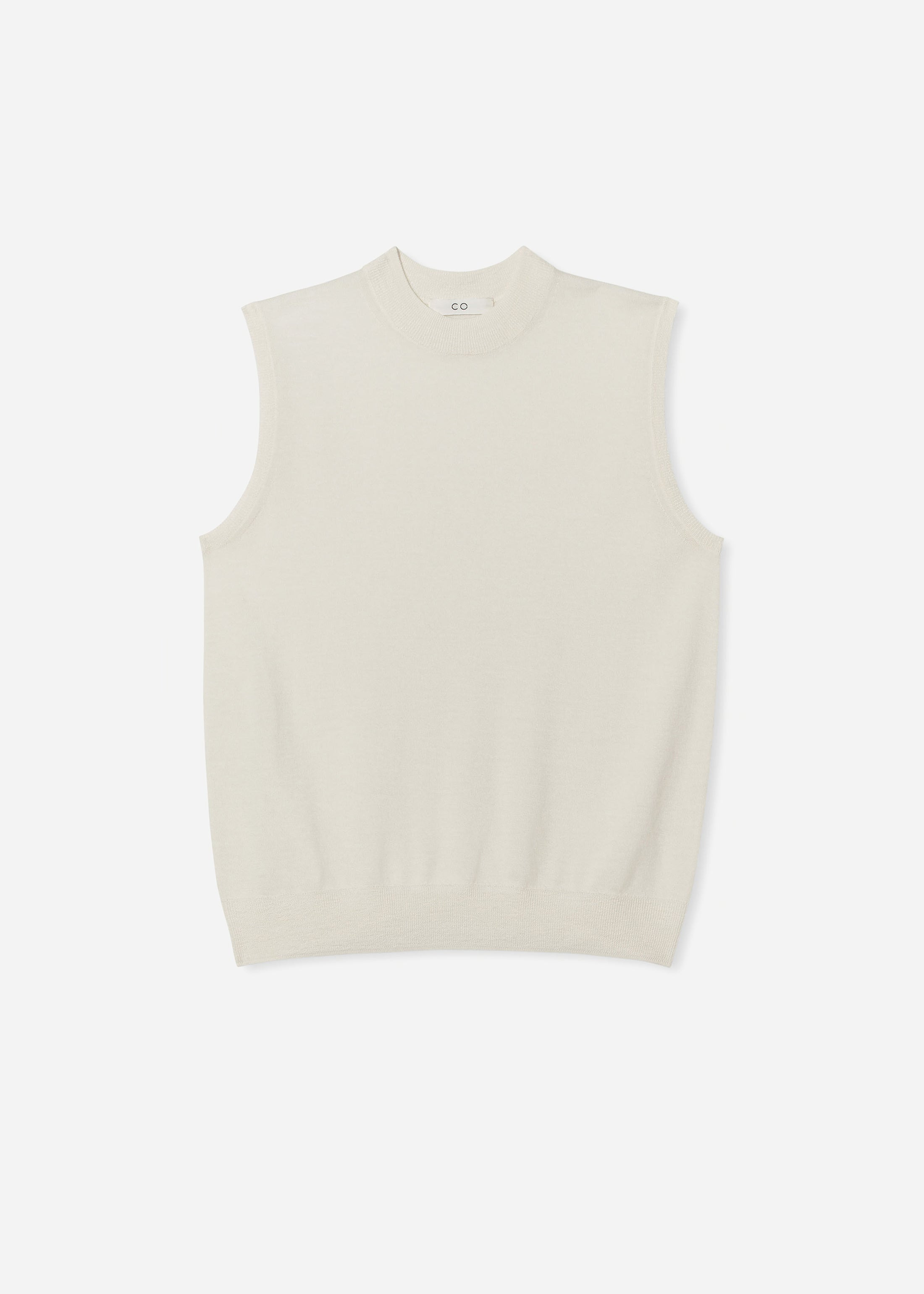 Crafted from our signature baby cashmere, this sleeveless shell tank in ivory offers an exquisite blend of softness and elegance. The fine knit fabric ensures a lightweight yet warm feel, perfect for layering or wearing alone. Thoughtfully designed with ribbing at the neck, armholes, and hem, it provides a refined silhouette that complements any wardrobe. Details - Ivory - 100% Cashmere - Dry Clean Only - 7171BCM-Core Size & Fit - True to size. - Model is 5'10" and wears a size small